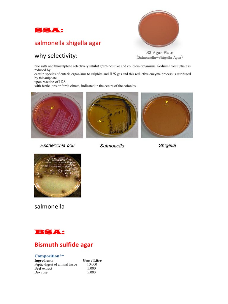 On ss agar, colonies of salmonella or shigella are smooth and opaque or colorless. Sp) student in university of peradeniya in srilanka.according to one of my friend's. Ss agar is recommended for use as a selective and differential medium for the isolation of salmonella and some shigella species from clinical and the basis for differentiation on salmonella shigella agar depends on the ability to ferment lactose and the absorption of neutral red as the bile salts. Salmonella shigella agar is superior to a number of other media for the isolation of salmonella spp. Heavily inoculate and streak the specimen as soon as possible after collection.